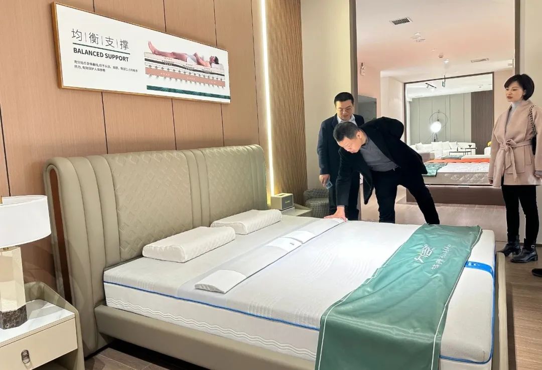 ▲潘副臺(tái)長(zhǎng)感受產(chǎn)品軟硬度▲