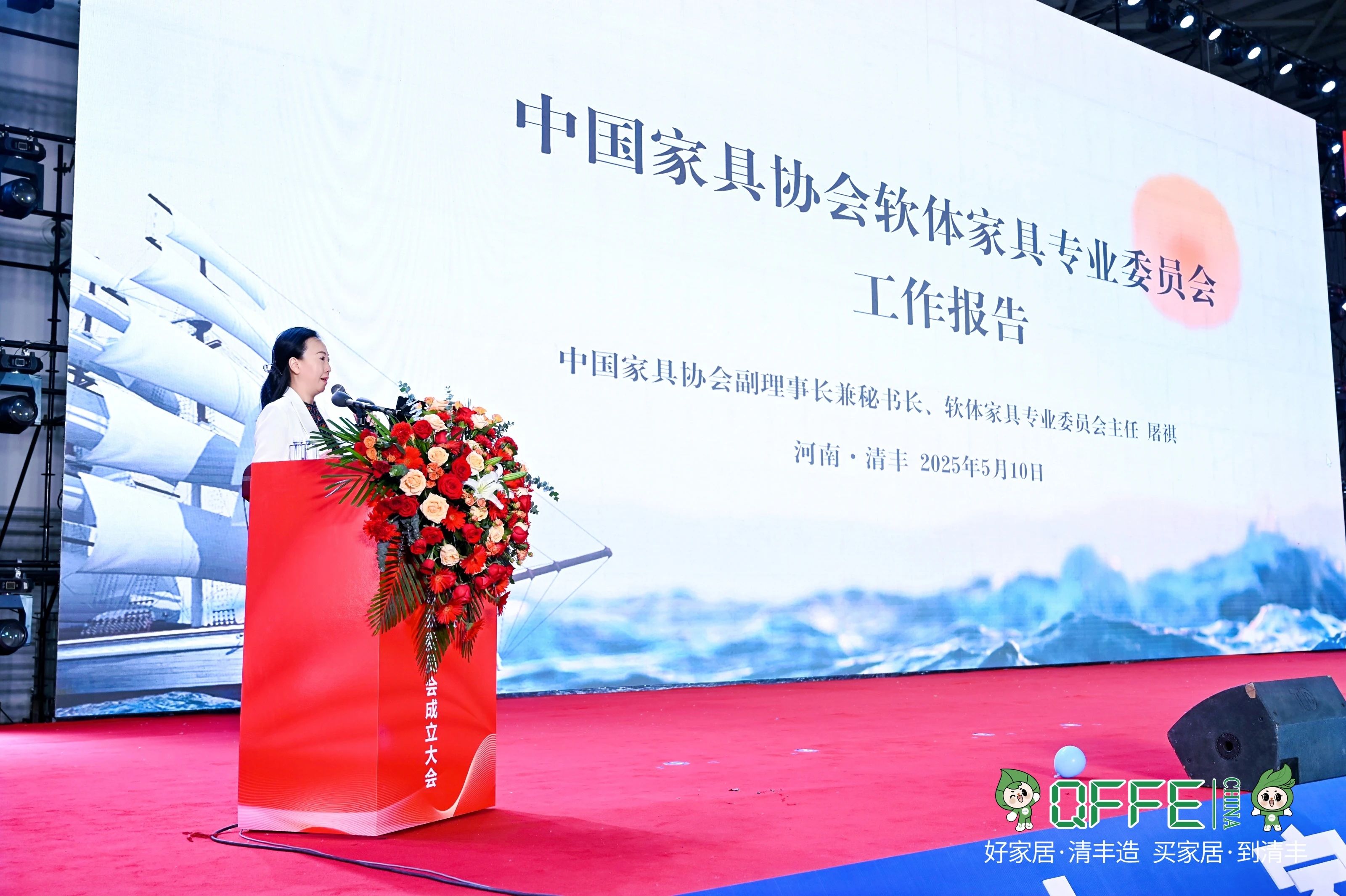2025年5月10日,中國家具協(xié)會軟體家具專業(yè)委員會成立大會在河南清豐現(xiàn)代家居交易中心F館隆重舉行。中國家具協(xié)會副理事長兼秘書長屠祺、來自行業(yè)協(xié)會領(lǐng)導(dǎo)、各知名企業(yè)代表等上百人出席會議。