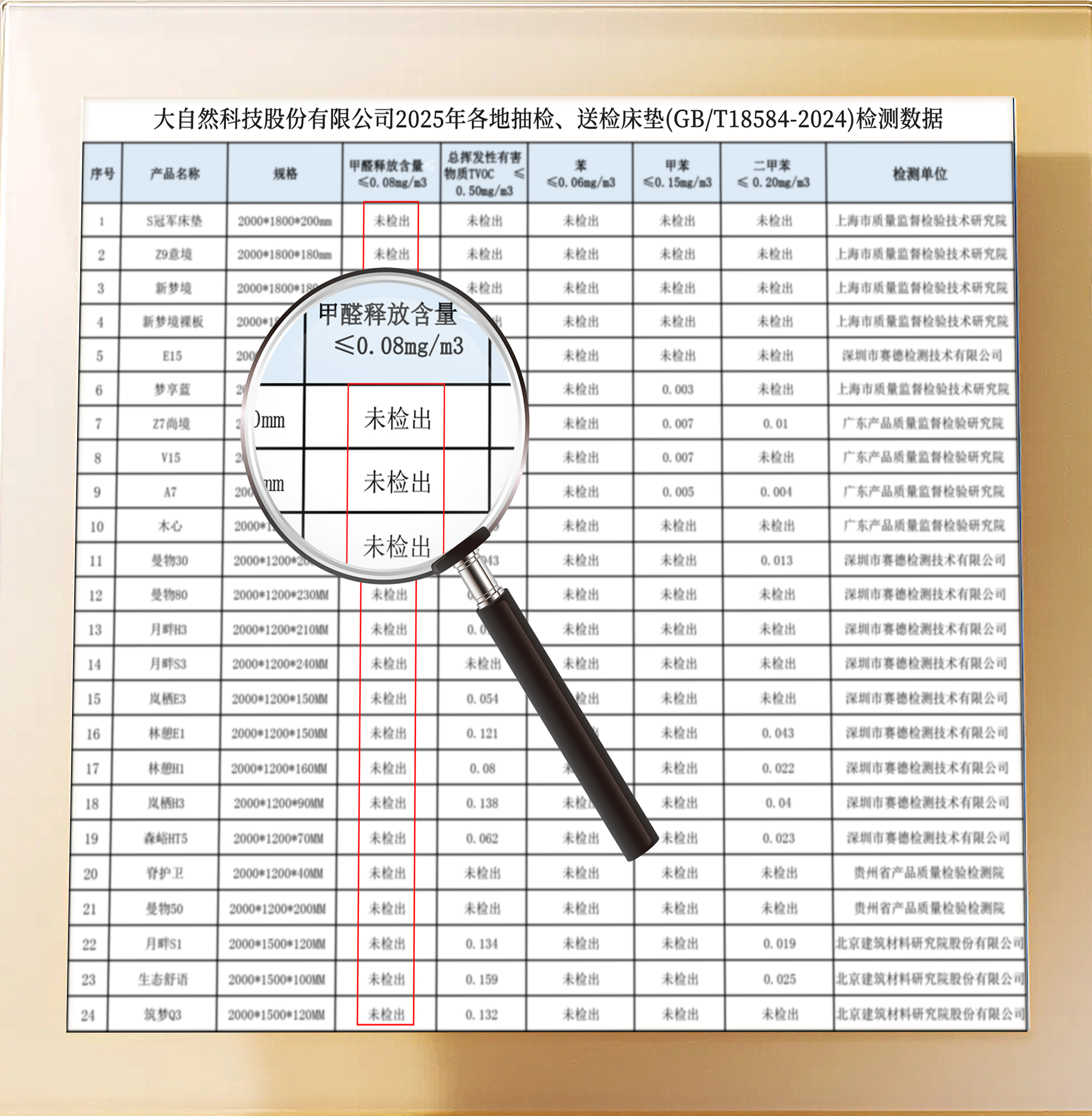 在新國標(biāo)發(fā)布實施之后,經(jīng)北京、上海、廣東、深圳等全國多地質(zhì)監(jiān)部門多次抽檢及公司主動送檢,大自然床墊的檢測結(jié)果均為“未檢出”。
