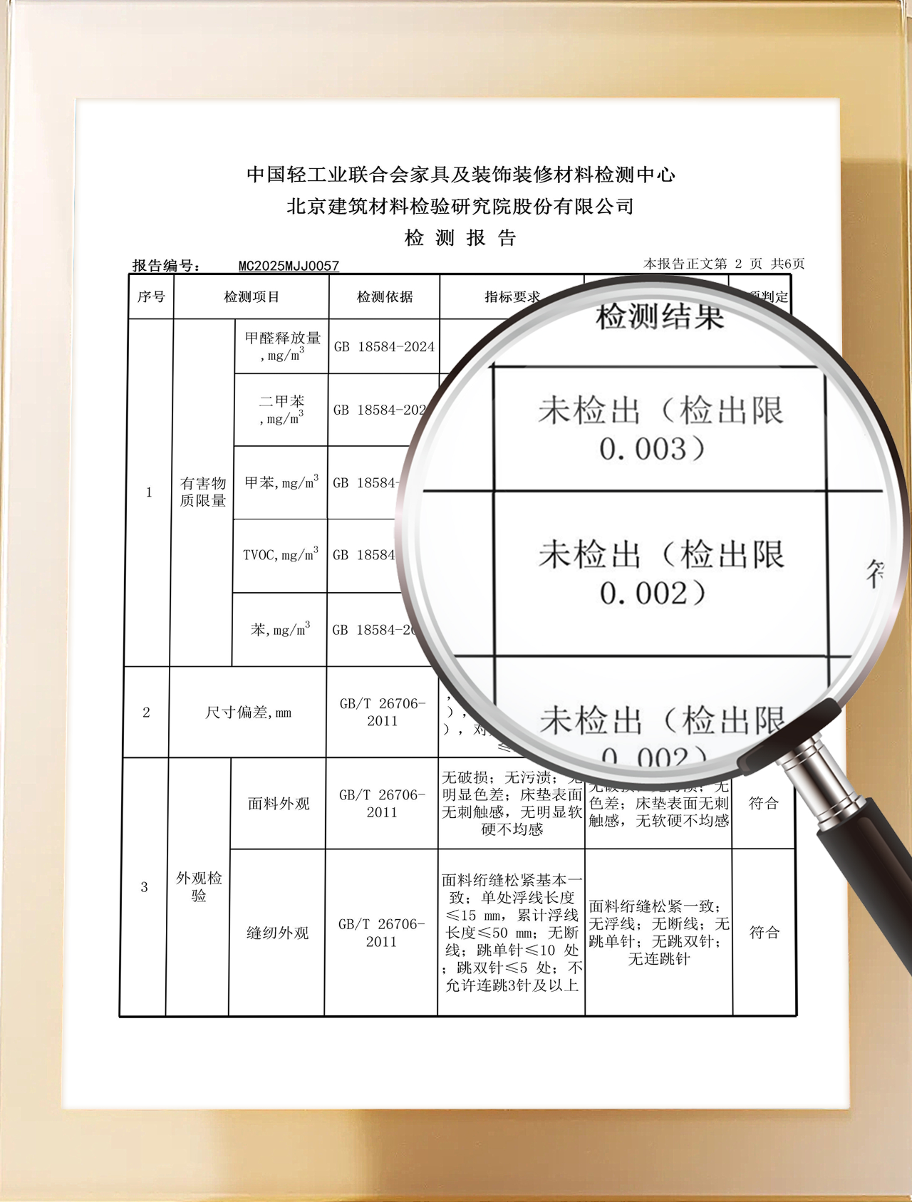 它代表著在目前精密的檢測儀器和嚴(yán)格的檢測方法下,大自然床墊的有害物質(zhì)含量低到儀器都無法捕捉!這不僅遠(yuǎn)超新國標(biāo)的最高要求,更是達(dá)到了當(dāng)前檢測技術(shù)所能判定的“極限環(huán)保”水平。